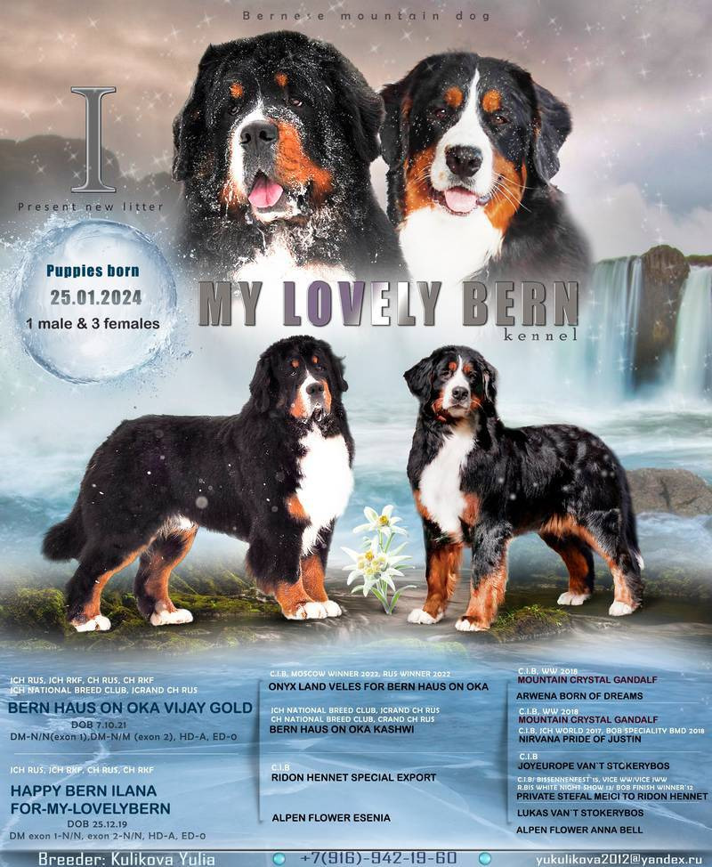 Описание: | Собаки породы бернский зенненхунд содержащиеся у нас в питомнике имеют хорошую родословную, участвуют в конкурсах и выставках, дают здоровое потомство. Такой щенок станет не только домашним любимцем, но и настоящим верным другом! Приобрести племенного щенка нового помета можно в нашем питомнике "MY LOVELY BERN", посмотреть щенков можно лично, получить консультацию кинолога можно по телефону. |